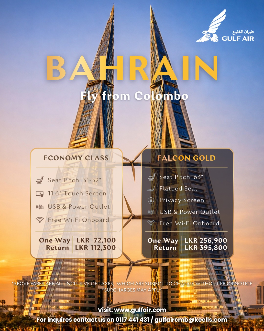 Ready to explore with Gulf Air? ✈️ Discover our exciting destinations to Europe & Middle East from Colombo! Start your adventure today!