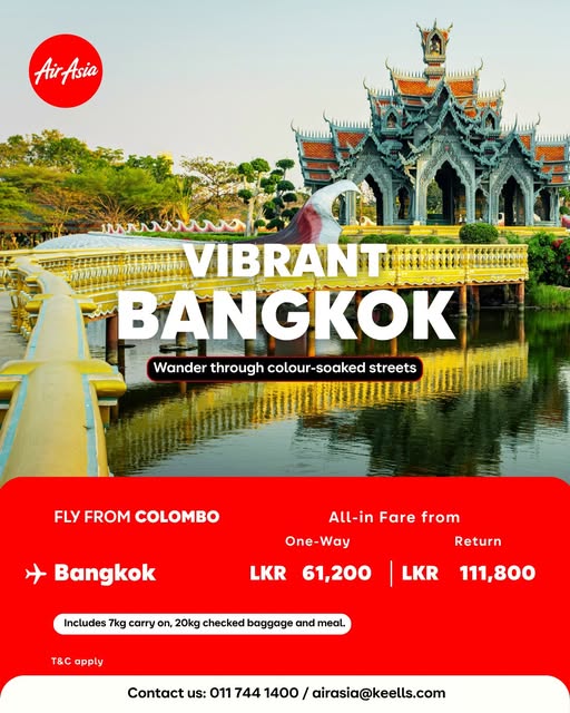 More flights, more flexibility!✈️ AirAsia is here with 10 weekly Colombo–Bangkok flights from Dec 2025 with easy connections to 🇮🇩 Bali, 🇻🇳 Hanoi, 🇹🇭 Phuket, and more!